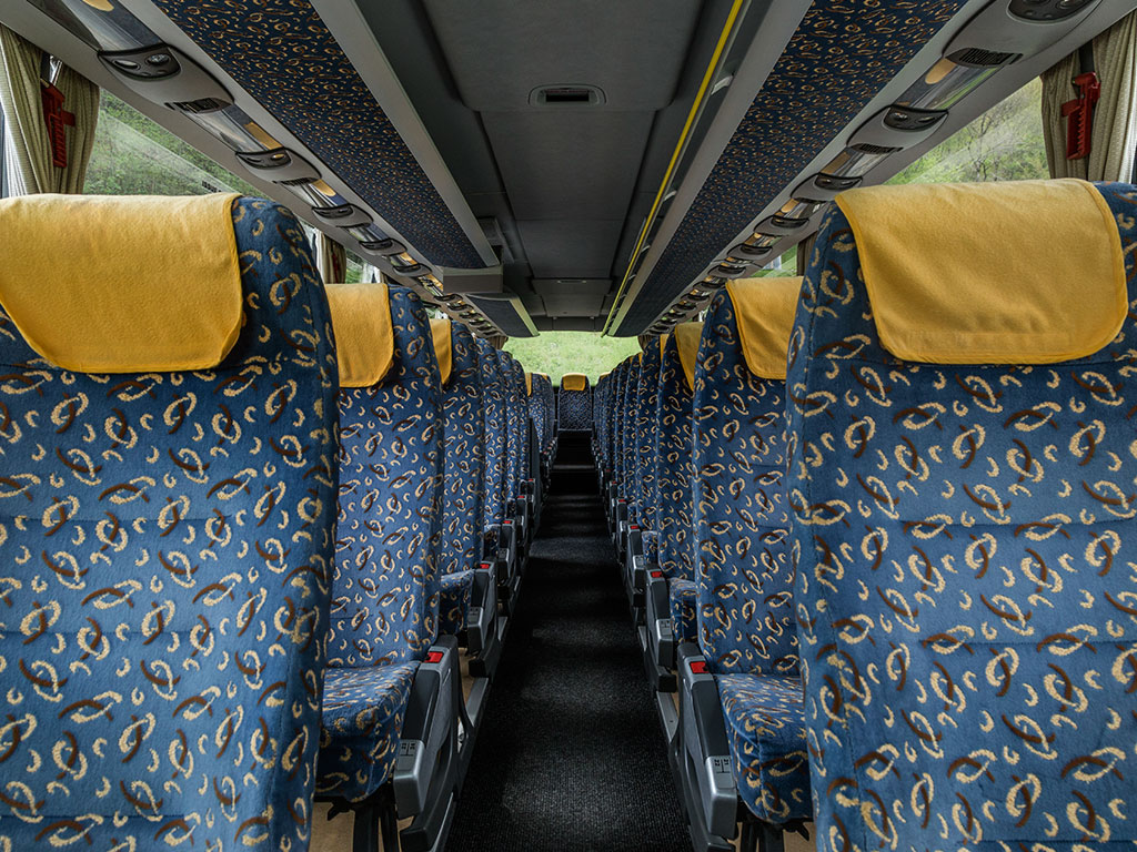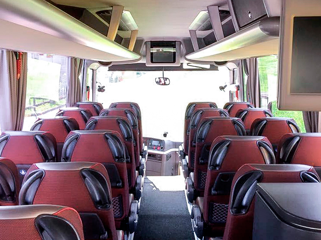 51+1+1 posti. Aria condizionata, 2 Microfoni, Radio , CD, 2 TV, DVD.Sedili